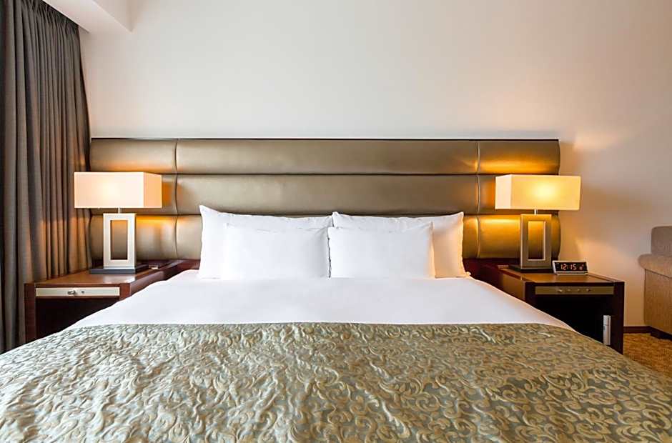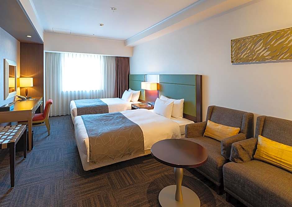 This nonsmoking double room features a electric kettle, tea/coffee maker and air conditioning with high floor and are fitted with comfortable sofa sets. They are equipped with a flat-screen TV, a hairdryer and electric kettle. Slippers and pajamas are also provided.
